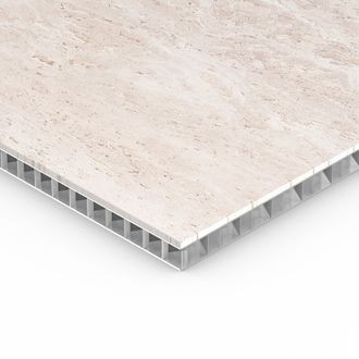 Облицовочная панель Duramet HC - сверхлегкий композит с натуральным камнем больших размеров на базе сотового алюминиевого листа - honeycomb. Трудногорючий материал Г1.