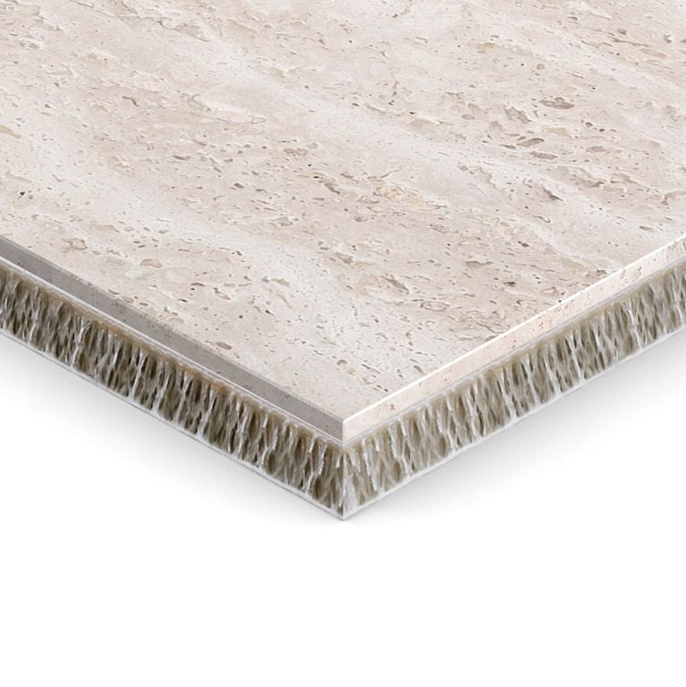 Облицовочная панель Duramica Fiberglass - сверхлегкий композит с натуральным камнем больших размеров на основе сотового стеклопластика.
