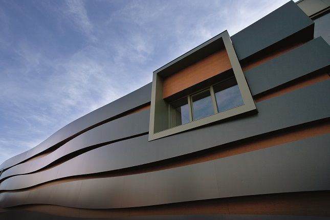 Дополните оформление фасада элегантным штрихом. Фасадные панели Rockpanel Metals (Рокпанель Металс) создают потрясающие эффекты благодаря глянцевой отражающей свет поверхности — даже на фасадах современных жилых зданий.